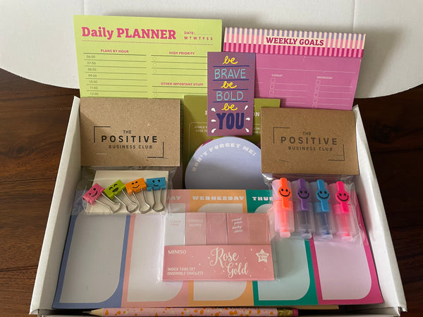 Positive Stationery, lifestyle items, a monthly subscription box and online business academy for entrepreneurs!